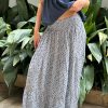 Long skirt, ruffled, split detail, elastic waist, long length, relaxed fit.