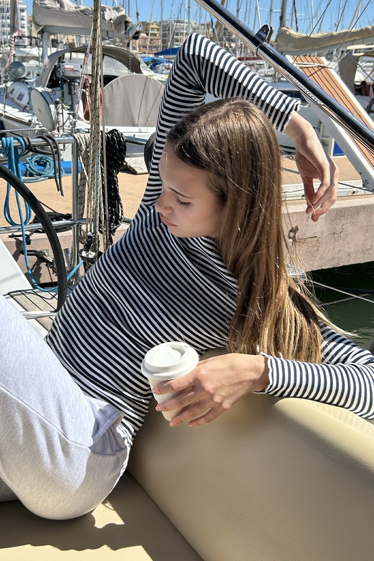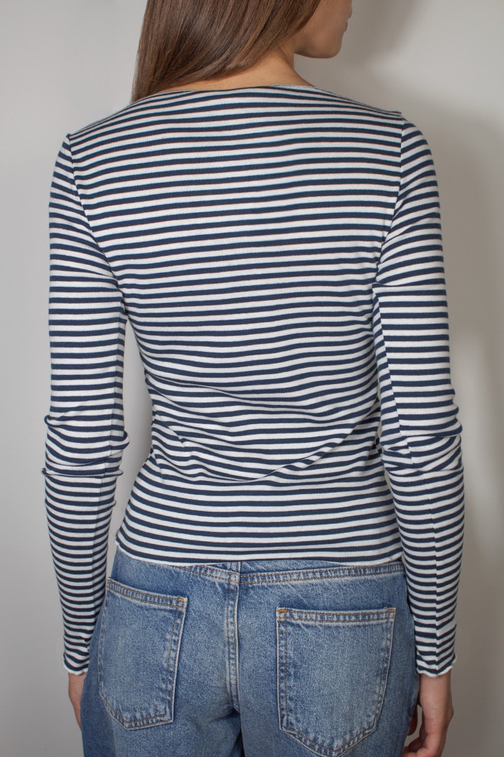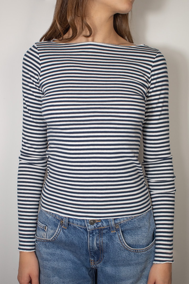 Boat neck t-shirt, long sleeves, frill bottom, regular length, slim fit.