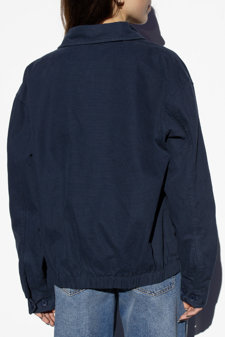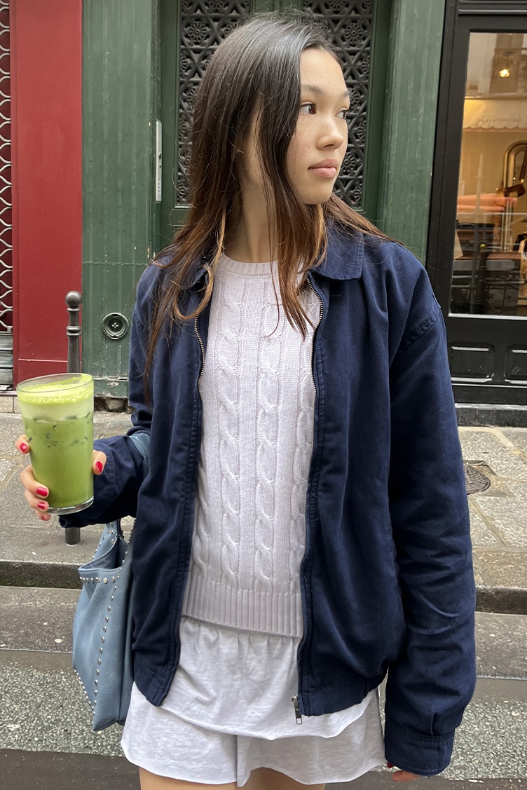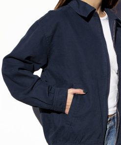 Bomber jacket, with collar, front zip fastening, side pockets, fully lined, long sleeves, long length, relaxed fit.