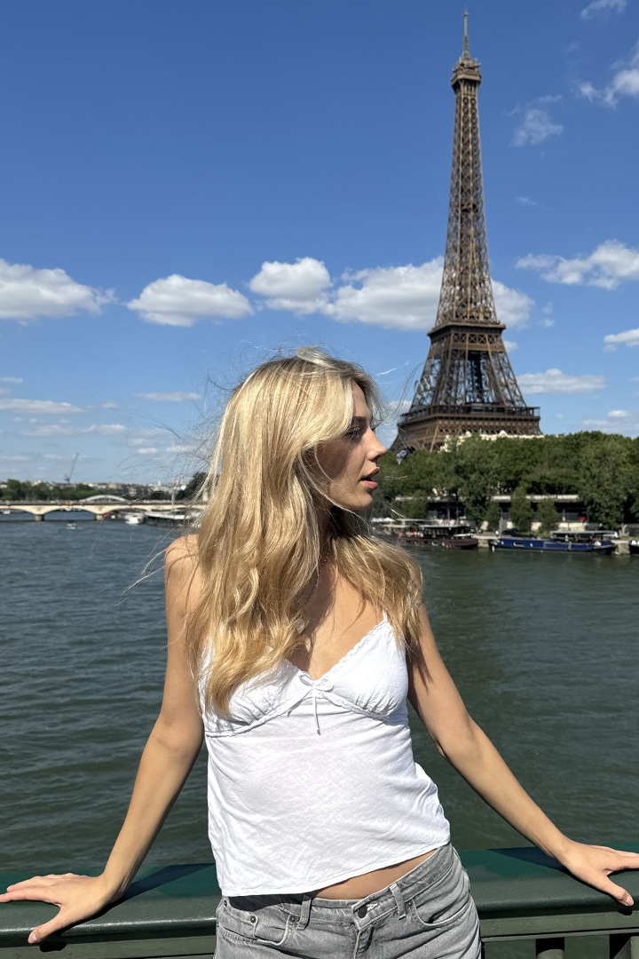Bow tank top, with adjustable shoulder straps, regular length, slim fit.