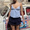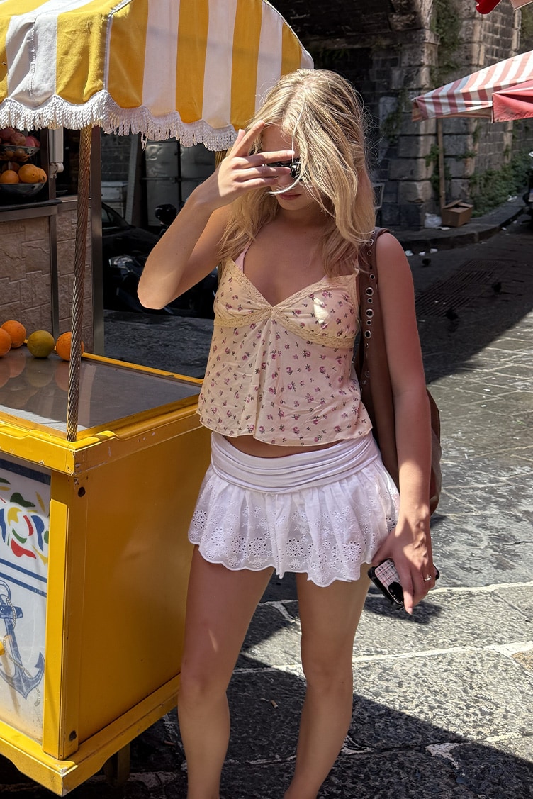 Ruffle skirt, inner shorts, short length, relaxed fit.