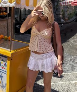 Ruffle skirt, inner shorts, short length, relaxed fit.