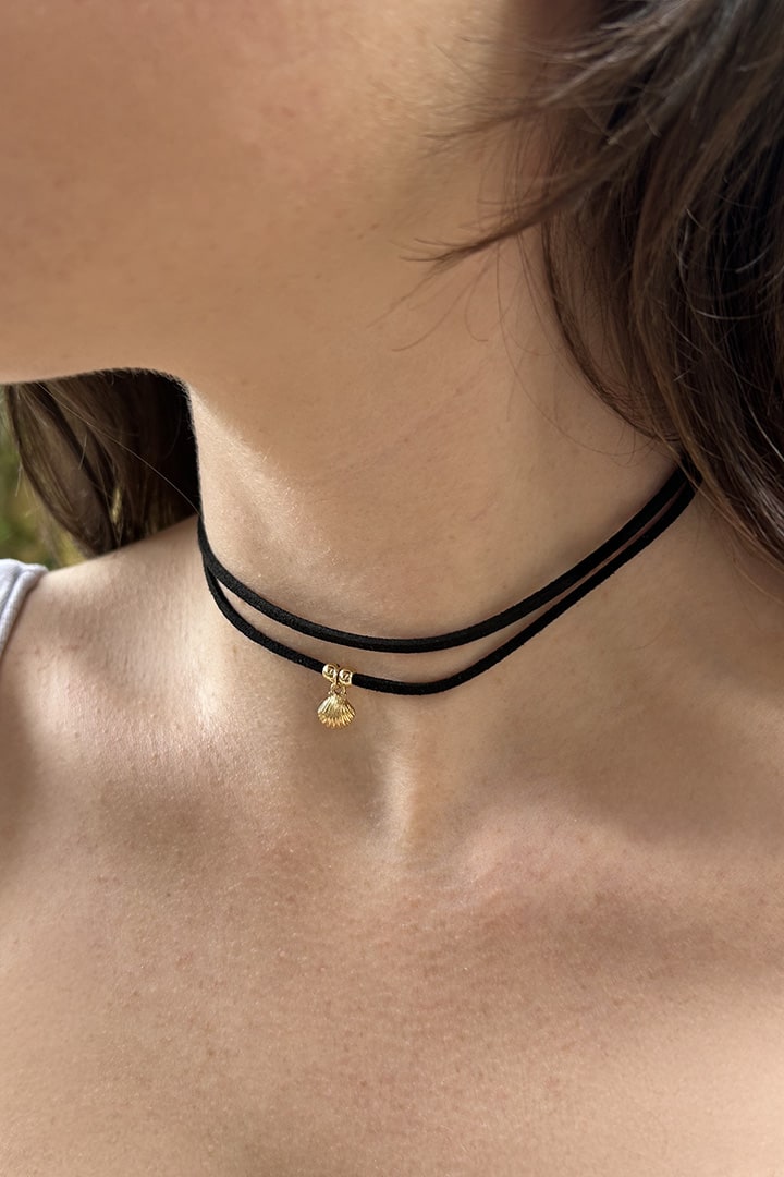 Choker necklace, snap-hook fastening, adjustable length.