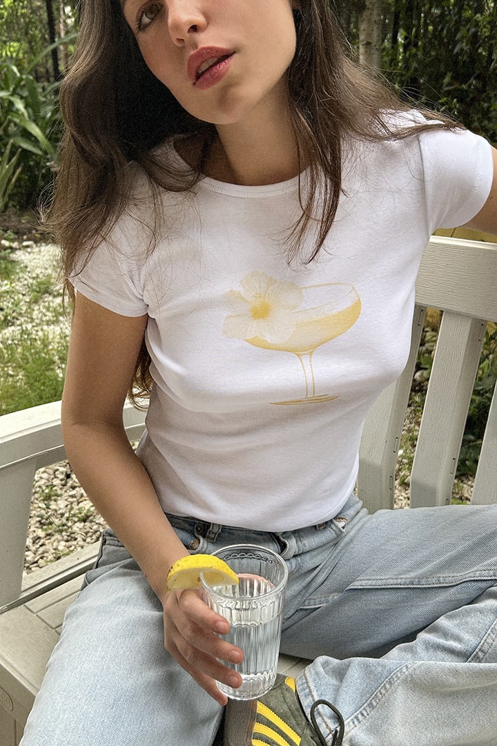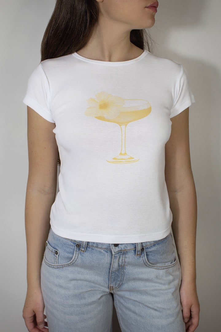 T-shirt with Cocktail print, crew neck, short sleeves, regular length, relaxed fit.
