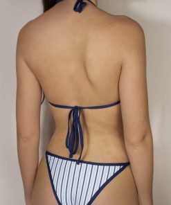 Triangle bikini top, contrasting edges, removable padding, fully lined, straps, back tie fastening.