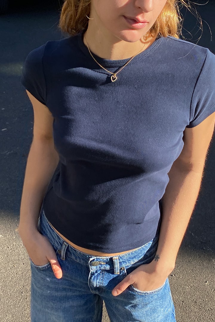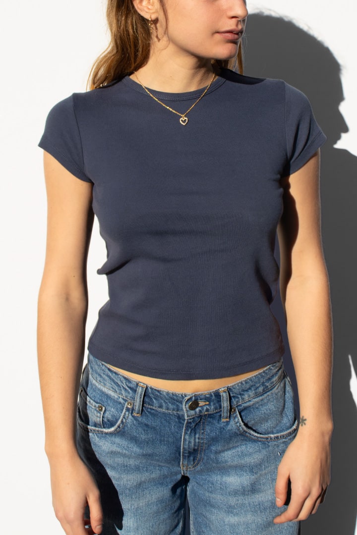 Crew neck t-shirt, short sleeves, short length, slim fit.