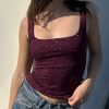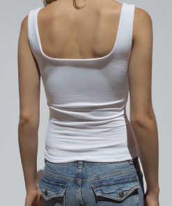 Top with flower print, square neck, sleeveless, regular length, slim fit.