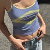 Top with flower print, square neck, sleeveless, regular length, slim fit.