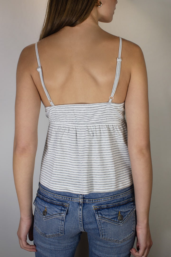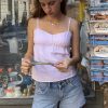 Lace top, V neckline, adjustable thin straps, sleeveless, regular length, slim fit.