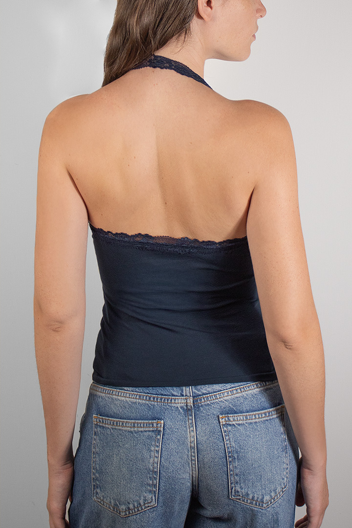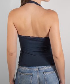 Lace top, v neckline, sleeveless, regular length, vestibilità aderente.