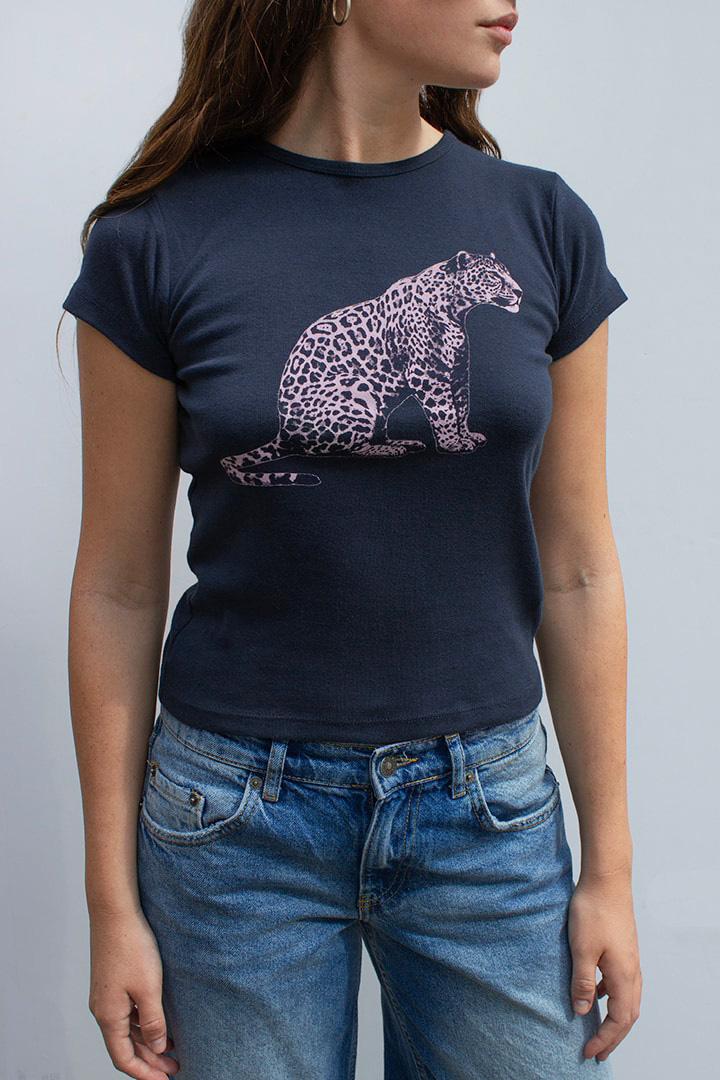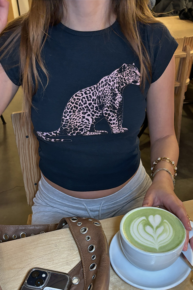 T-shirt with Leopard print, crew neckline, short sleeves, regular length, relaxed fit.