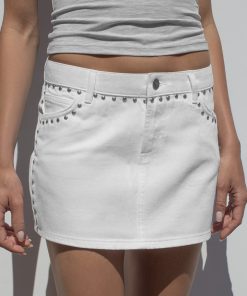 Jeans with bows embroidery, wide leg, low waist, button up and zip fastening, 4 pockets, belt loops in vita, relaxed fit.