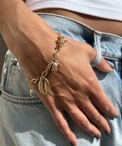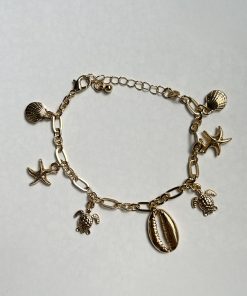 Multi pendant bracelet, adjustable length, snap-hook fastening.