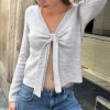 V neck sweater, with ruffle hem, backlace-up detail, long sleeves, regular length, slim fit.