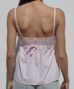 Tank top with buttons, V neckline, striped pattern, with adjustable shoulder straps, sleevelss, back fastening, regular length, relaxed fit.
