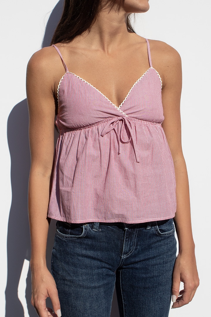 V-neck top with bow, with adjustable straps, sleeveless, regular length, slim fit.