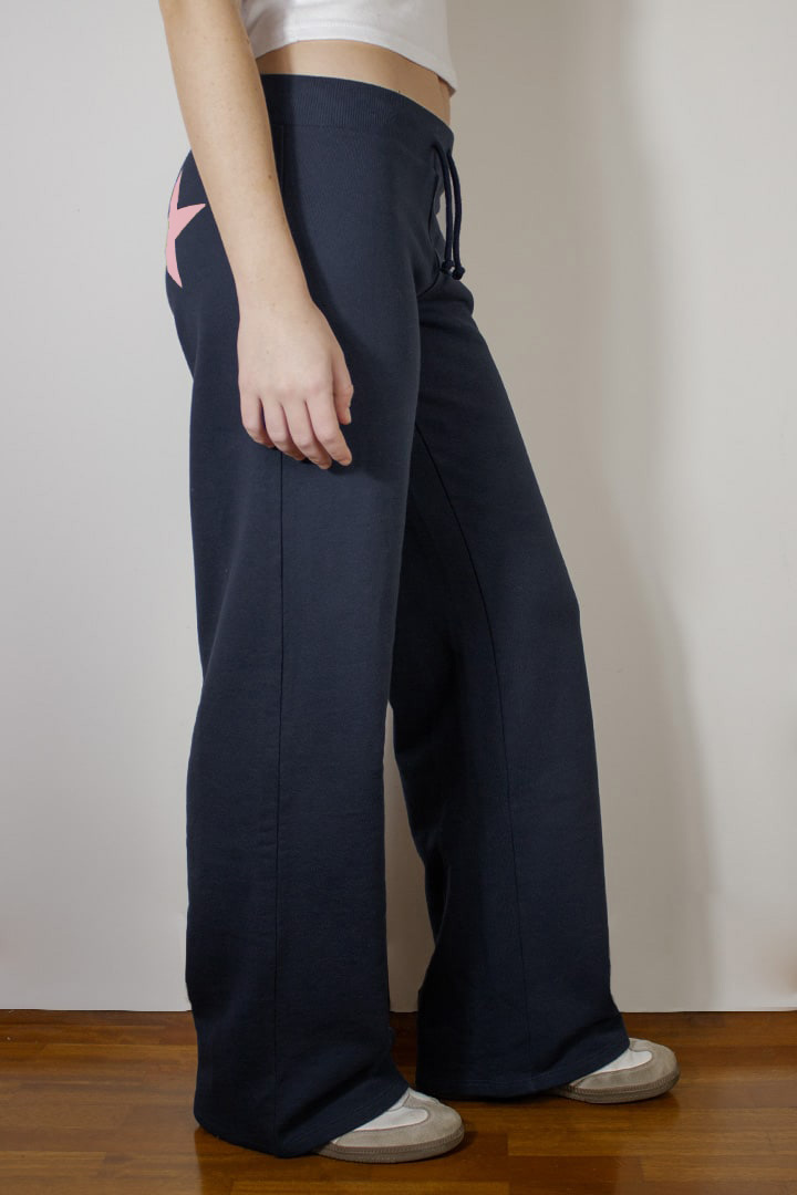 Joggers, with stars print, wide-leg design, elastic waistband, regular length, relaxed fit.